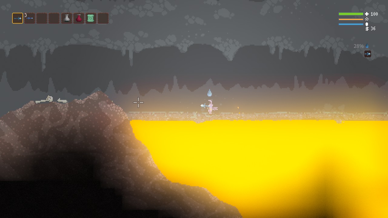 죽으면서 배운 것들의 기록 1. 월드맵의 생성이 완전 랜덤은 아닌 것 같다. 광산의 경우 오른쪽 아래에는 항상 용암이 있고, 용암을 건너가면 아이템이 있거나 없거나(...) 하는듯. 기본적으로 주어지는 물 플라스크를 장착한 후 우클릭을 누르면 물을 찔끔찔끔 싸는데, 용암에 뿌리면 상호작용으로 돌길(?)이 만들어진다. 2. 지상의 왼쪽은 완전히 막혀 있을 때도 있고, 나무 안쪽으로 물이 채워져 있을 때가 있다. 3. 완드와 스펠이 완전하다고 느껴지기 전까지는 개쫄보 플레이가 답인듯. 대충 한화면을 뛰어넘는 거리를 점프 하면 높은 확률로 죽는 것 같다. 4. 스펠 중에 함정 스펠이 많다. 설명들이 지나치게 간소화 되있지만, 읽었을때 뭔가 꺼림직한 거는 높은 확률로 구린듯. 5. 물의 소중함을 느끼게 해주는 게임. 오만가지 상태이상도 .. 게임/Noita 2019.12.04
