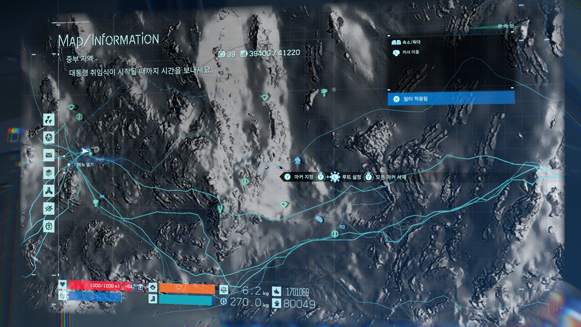 따라서 직진을 하면 안되고, 살짝 돌아서 갈 필요가 있습니다. bt지역 우회루트는 위 스샷상 파란점선을 참고하세요.
