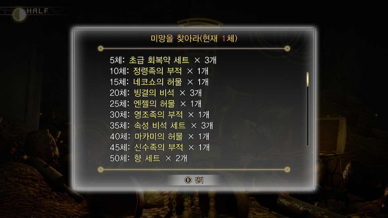 미망을 일정 갯수 이상 발견할 때마다 보상을 받을 수 있습니다