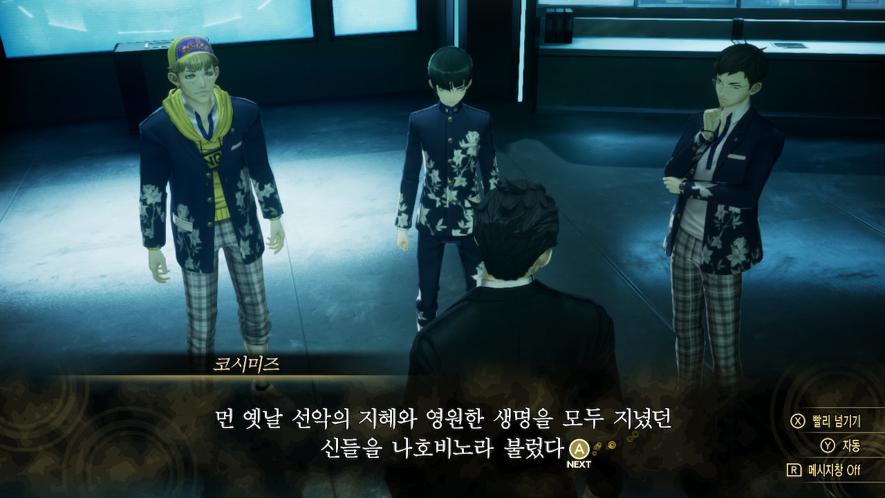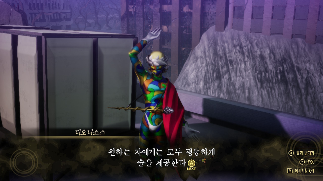 여기서 디오니소스 편을 들으면 로우 성향이, 사악한 프로스트 편을 들으면 카오스 성향이 증가합니다