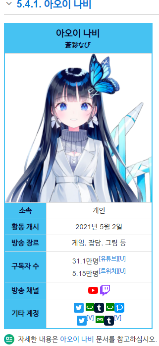 일단 비교를 위해서 홀로라이브 채널에서 조회수가 가장 높은 영상 한개를 보고, 위키에서 보이는 k-버튜버(개인은 빼고 mcn 소속의 상품만)를 봤는데...
