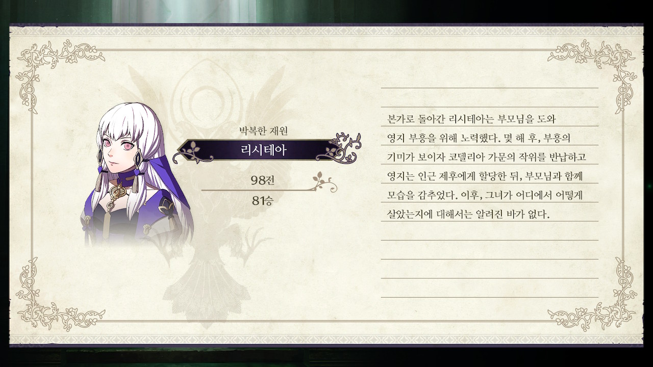 참고로 2회차에서 확인한 결과, 사이드 스토리-어스름의 장을 한번 클리어 하면 콘스탄체, 하피, 엘비스, 율리스를 조건없이 영입할 수 있고, 클리어 특전인 원시의 보배도 바로 받아서 사용할 수 있었습니다.