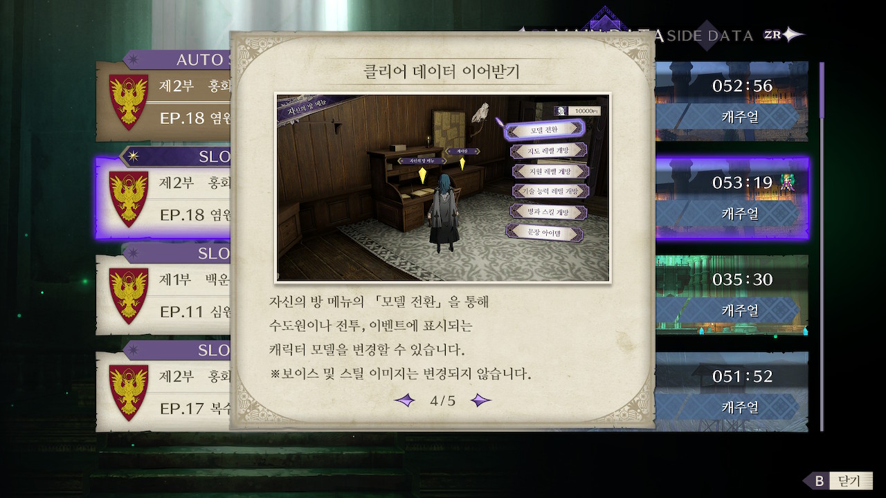 클리어 데이타에서 인계할 수 있는 요소들(해금에 일정량의 명성치 소모)
