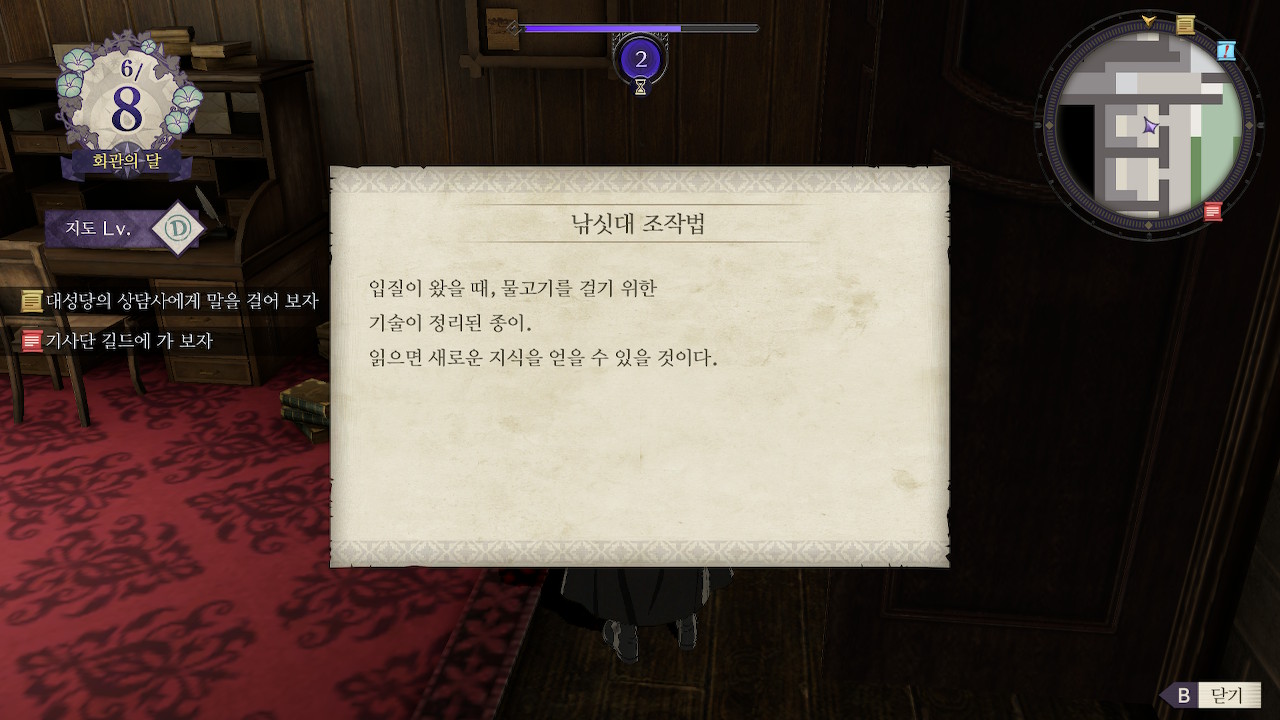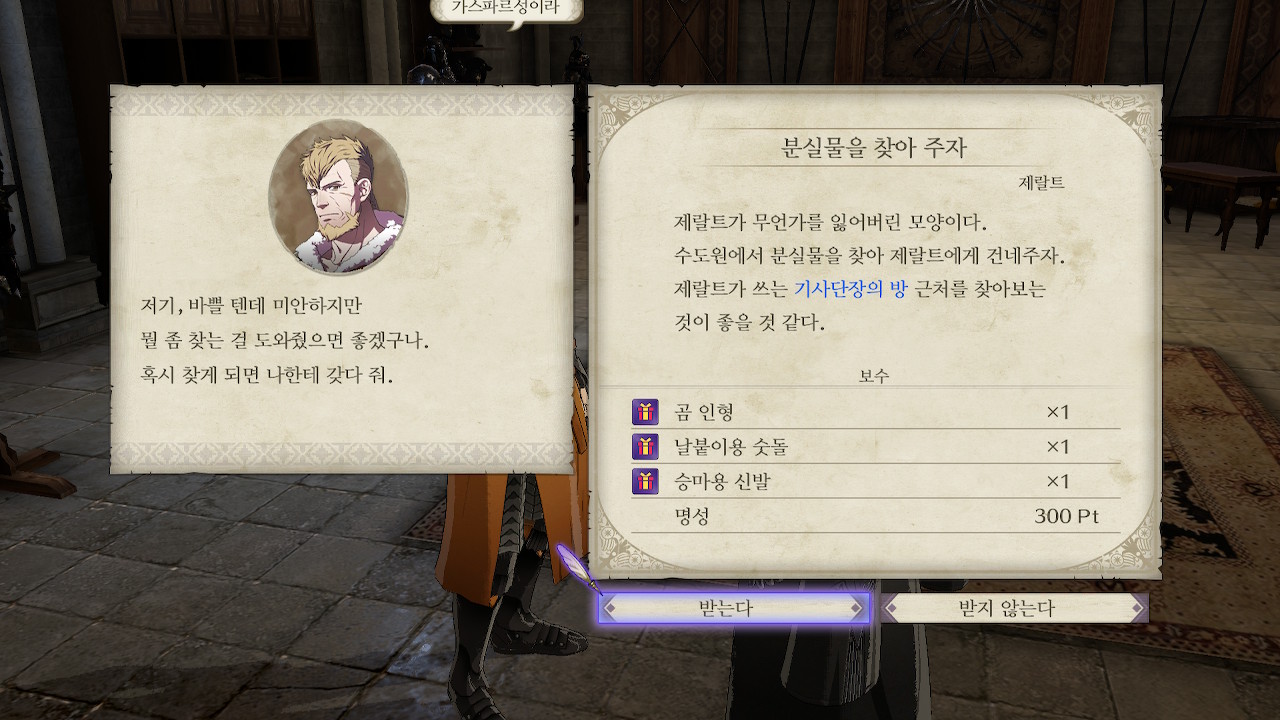 수도원 곳곳에 분실물들이 있는데, 적당한 멤버들에게 나눠주면 호감도가 상승합니다.