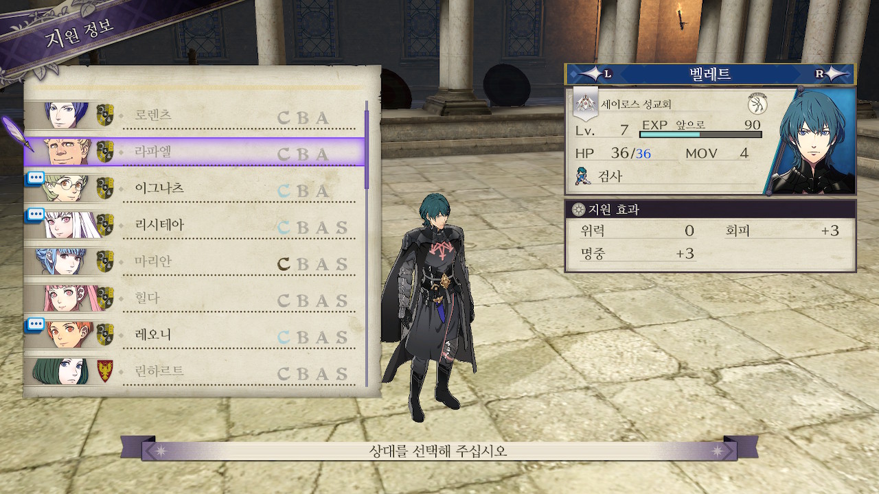 여기까지 진행하면서 dlc관련 보상을 활용한다거나 dlc캐릭들 영입을 일부러 안했었는데, 사신기사와의 첫번째 전투를 해본 결과..그냥 dlc를 미리 깨놓는걸 추천합니다. 따로 주인공 스탯관리를 안했거나, 리시테아를 집중육성해서 다크스파이크를 배운게 아니라면(이 타이밍에 배울 수 있는건지 모르겠지만) 사신기사를 잡는게 너무 어렵습니다.