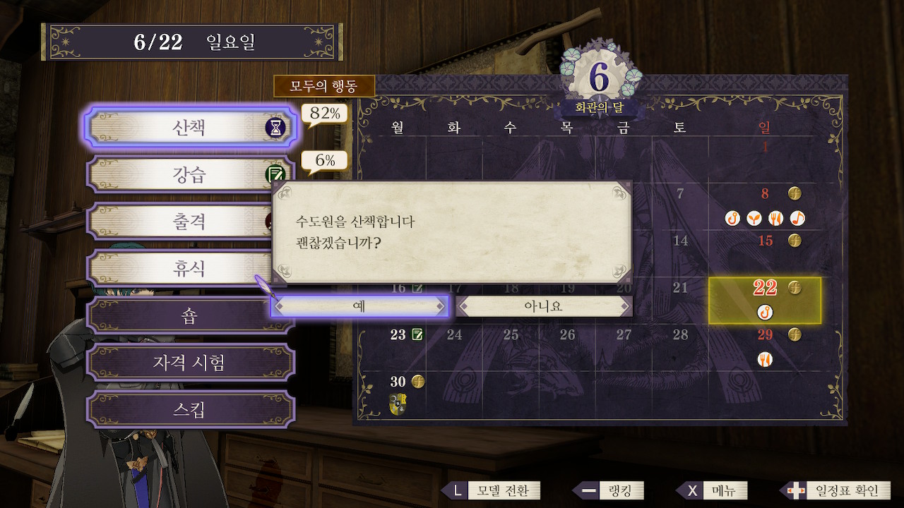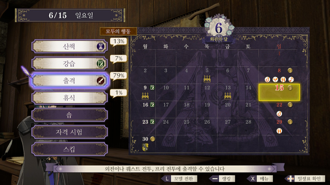 참고로 캘린더에 빨간색 느낌표가 뜬 주말(강마의 날)에는 웬만하면 출격을 하는게 좋습니다.