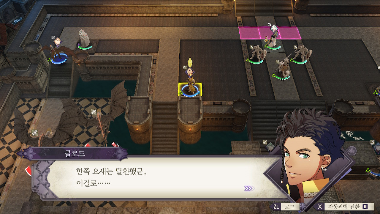 중앙의 벨레트, 클로드는 고정, 근처에는 레오니같은 에이스나 여유가 된다면 이동력이 좋은 아군을 추가적으로 배치하는걸 추천합니다.