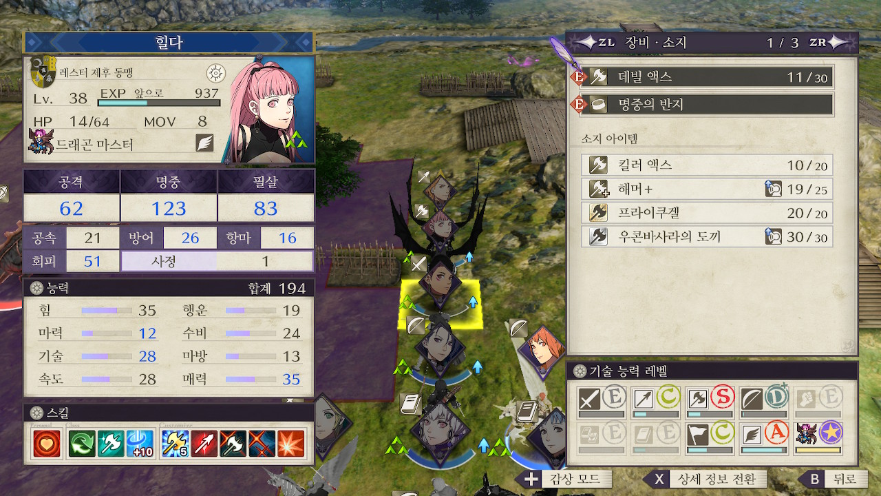 반지는 두개를 들고 다니는데, 숏보우를 쥐어주고 회피탱으로 쓸 때는 회피의 반지를 사용하고(사실 숏보우를 들면 근거리 반격도 필요 없는데, 활 S+를 못찍어서 그냥 넣어놓은 상태입니다), 공격적으로 굴릴 때는 필살의 반지를 쓰면 됩니다.