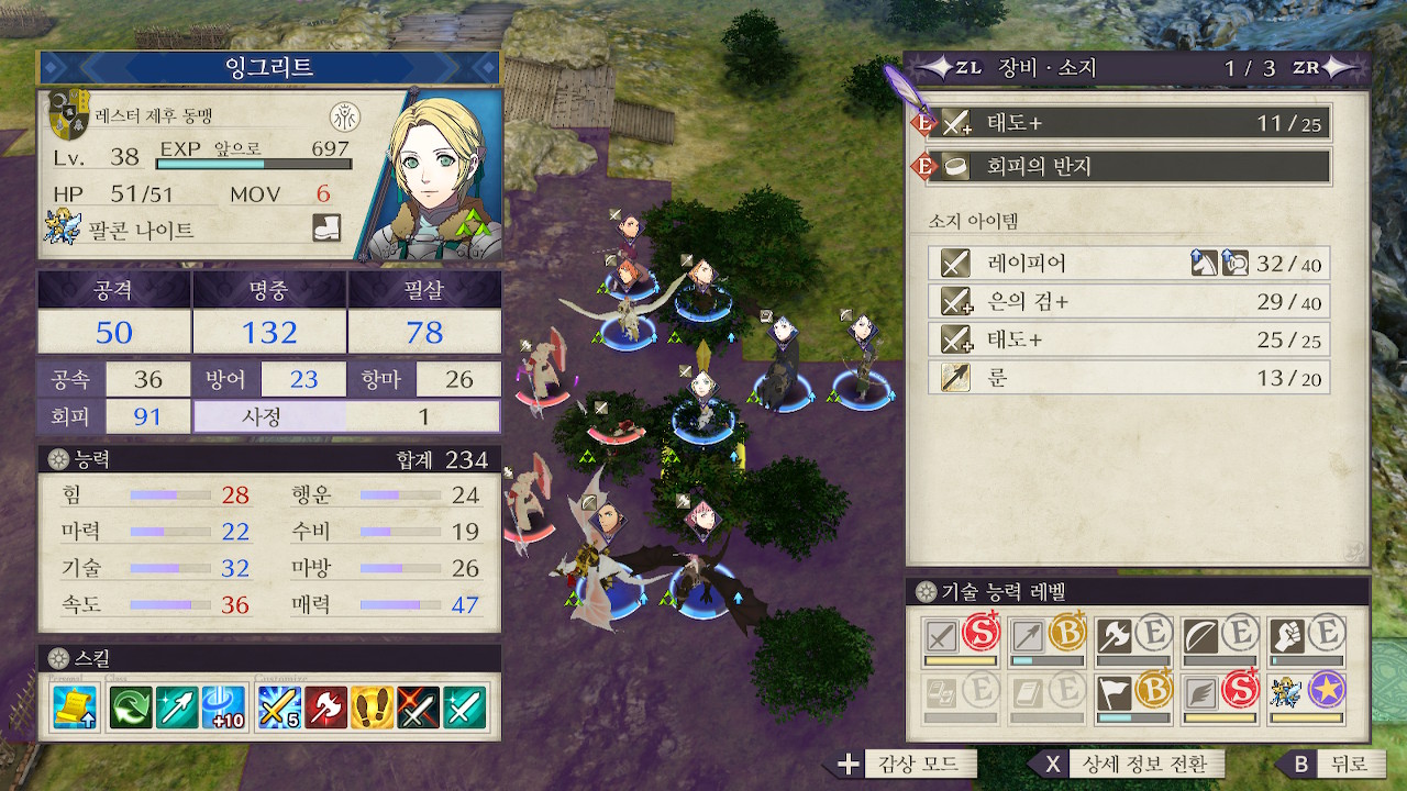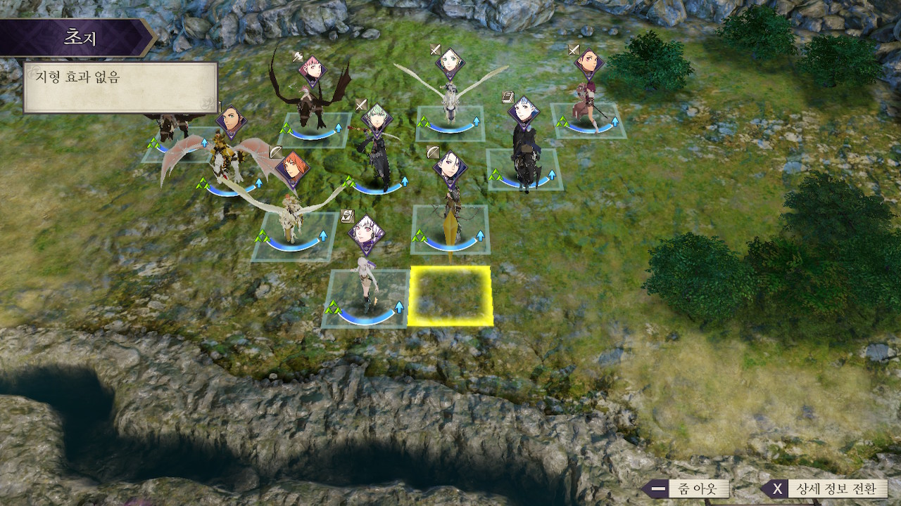 팔콘 나이트 잉그리트를 수풀로 이동시킨 후 내리기, 경계 태세 발동.