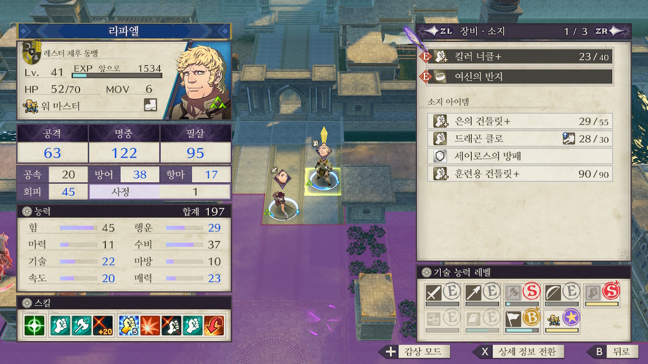 마방 10따리 라파엘이지만 체력과 수비가 높아서 웬만하면 죽을 일이 없습니다. 정 불안하면 성수를 복용하거나, M쉴드를 써주세요.