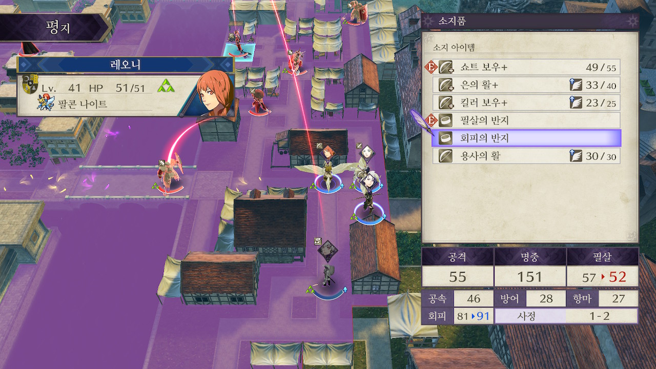 호기롭게 돌아갔던 라파엘과 페트라...지만 반격이 매서운 적병들. 회피율이 아무리 높아도 100% 아니면 피격당하는 경우가 생깁니다.