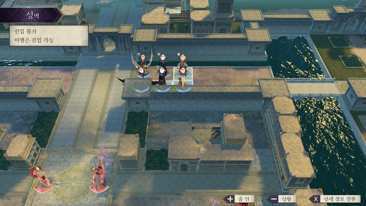만약 위와 같은 방어력이 낮은 유닛이 적 비병에게 노려지는 상황이 발생한다면, 비병의 공격범위를 피해서 아군 마법/원거리 유닛들을 이동시켜주세요.