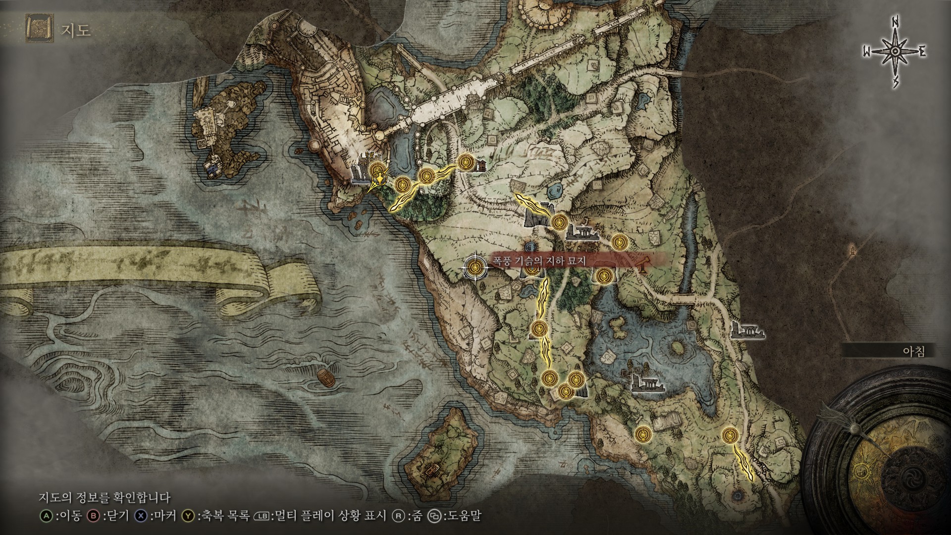 먼저 폭풍 기슭의 지하 묘지로 들어가서 미니보스까지 다 잡고 영체를 얻읍시다.
