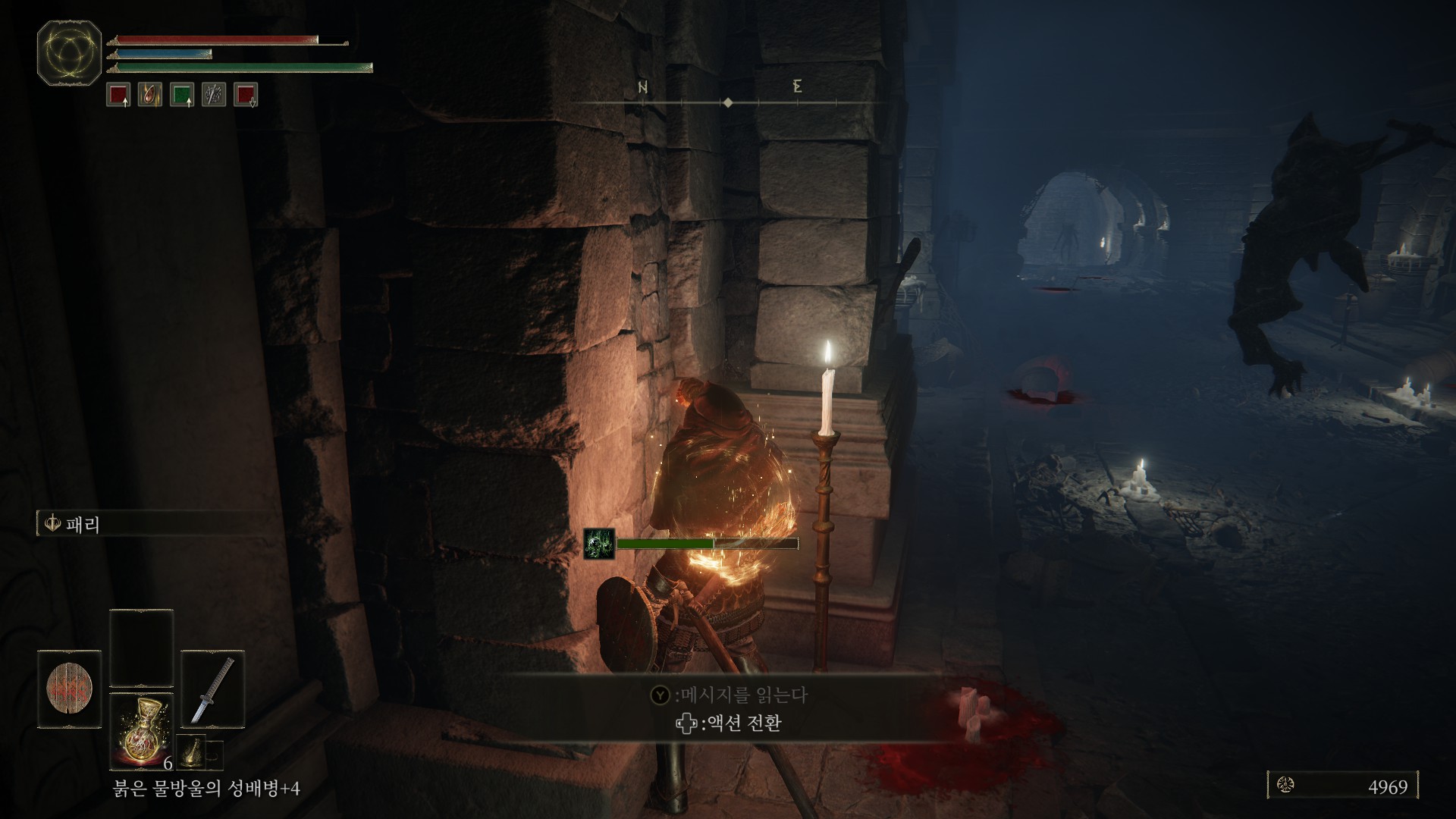 (보스에게 죽으면 가까운 축복으로 귀환하지 마세요. 왼쪽 선택지로 귀환하면 장막 앞에서 부활합니다.)