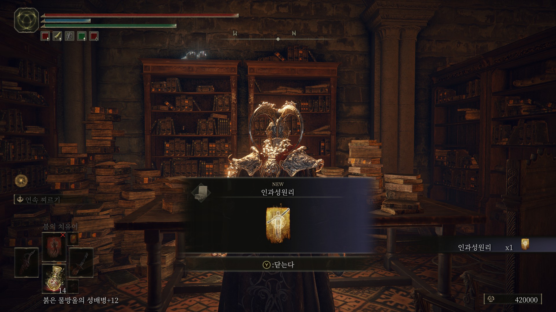 피의 모그를 녹인 후에 원탁에 있는 기드온에게 말을 걸면 인과성원리를 얻을 수 있습니다.