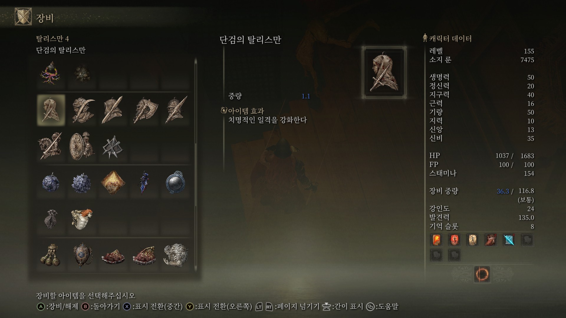 참고로 단검의 탈리스만은 앞잡이나 뒤잡으로 푹찍할 때 데미지를 늘려주는 효과를 갖고 있습니다.