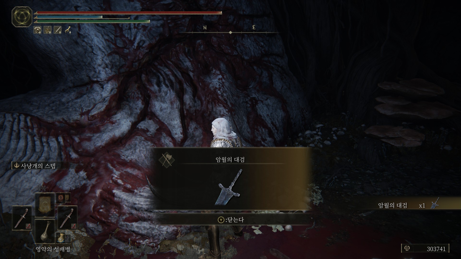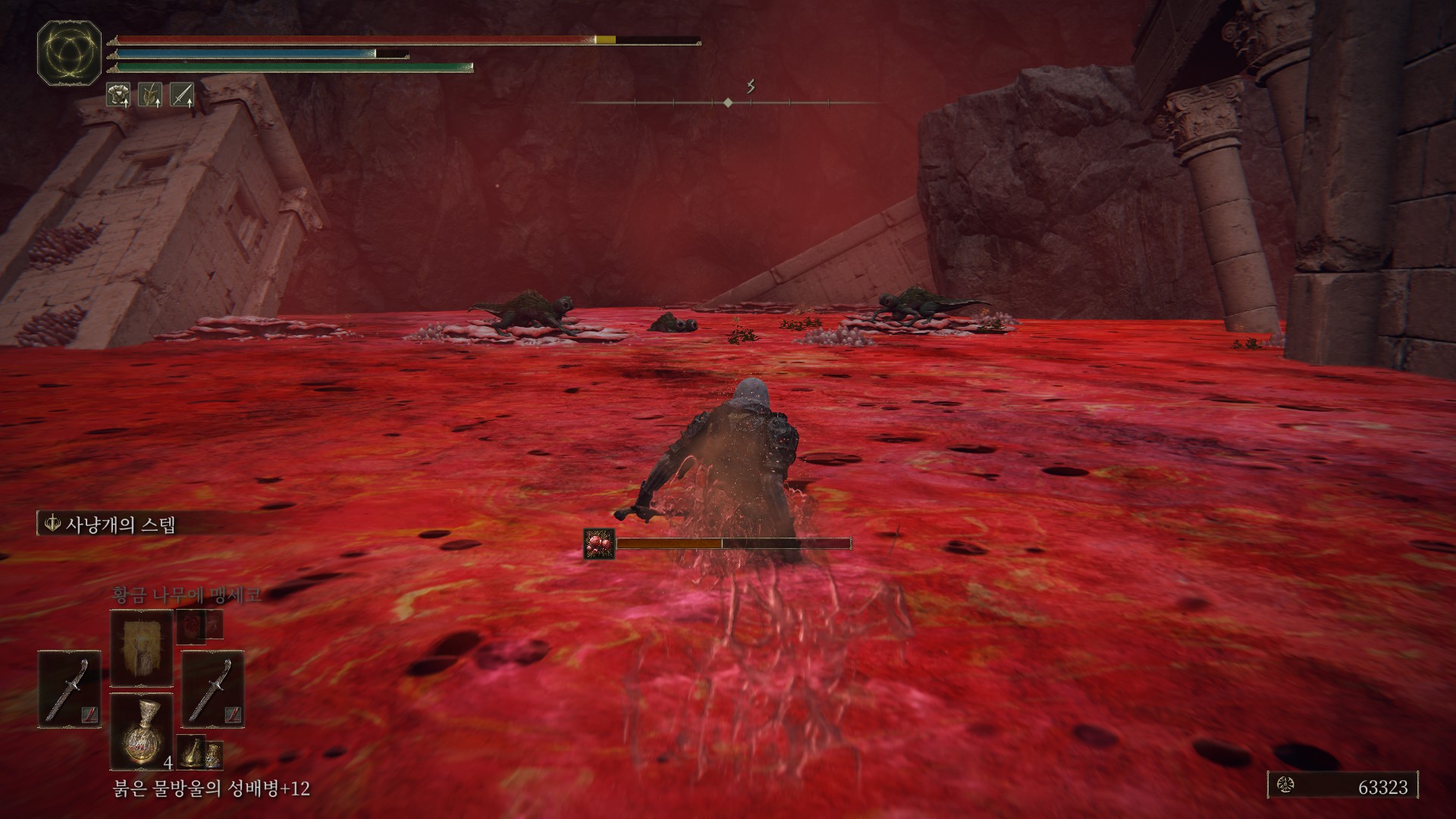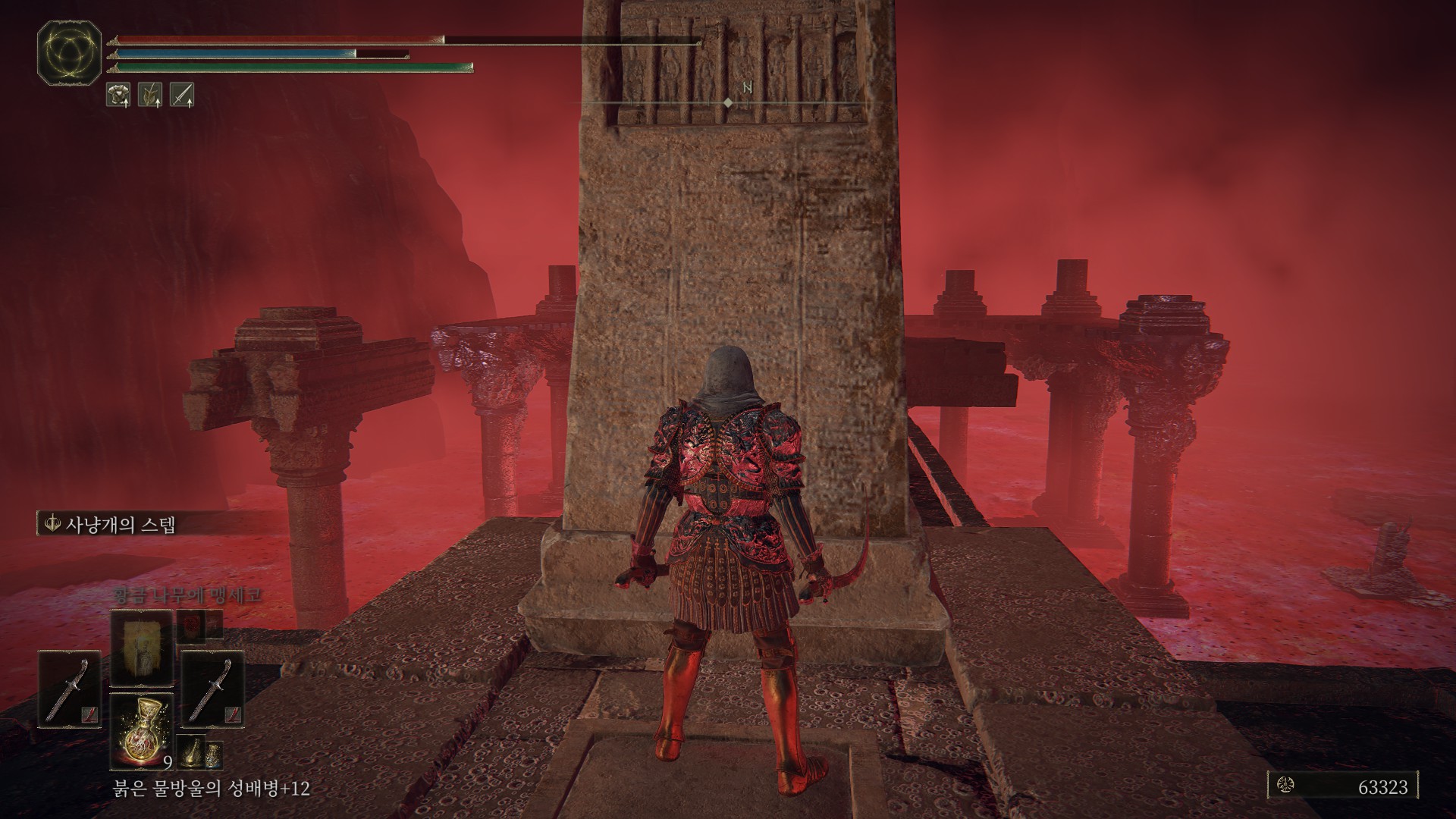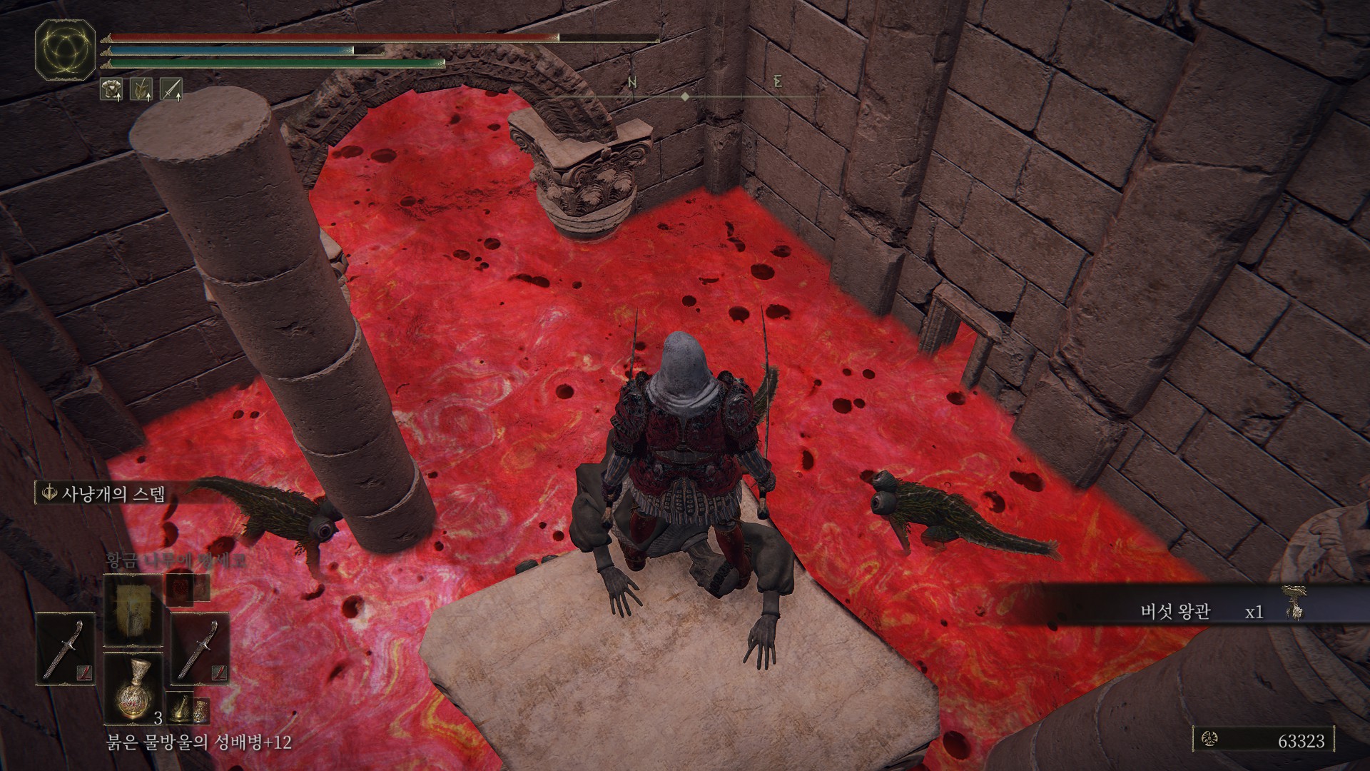 대회랑에서 조금 이동하면 아래쪽에 보이는 신전 같은 곳 안에서 전갈의 침(부패 단검)을 먹을 수 있습니다.