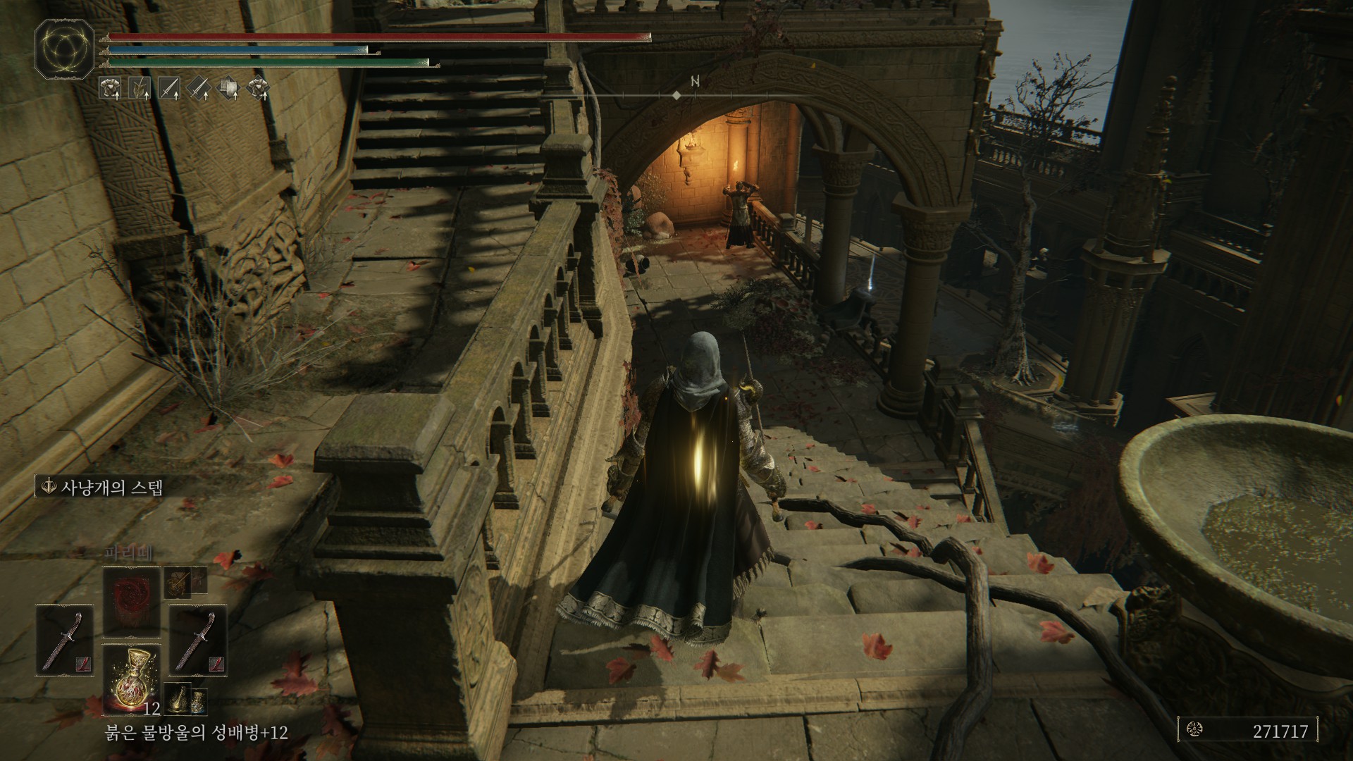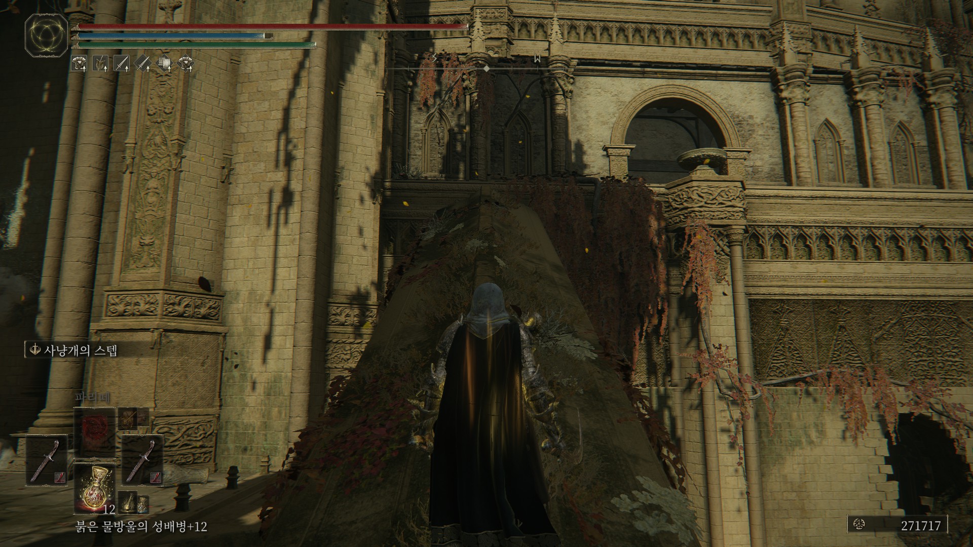 떨어져서 좌우를 둘러보면 스샷같은 곳이 보일텐데 앞에 보이는 지붕을 타고 성 안으로 들어갑니다.