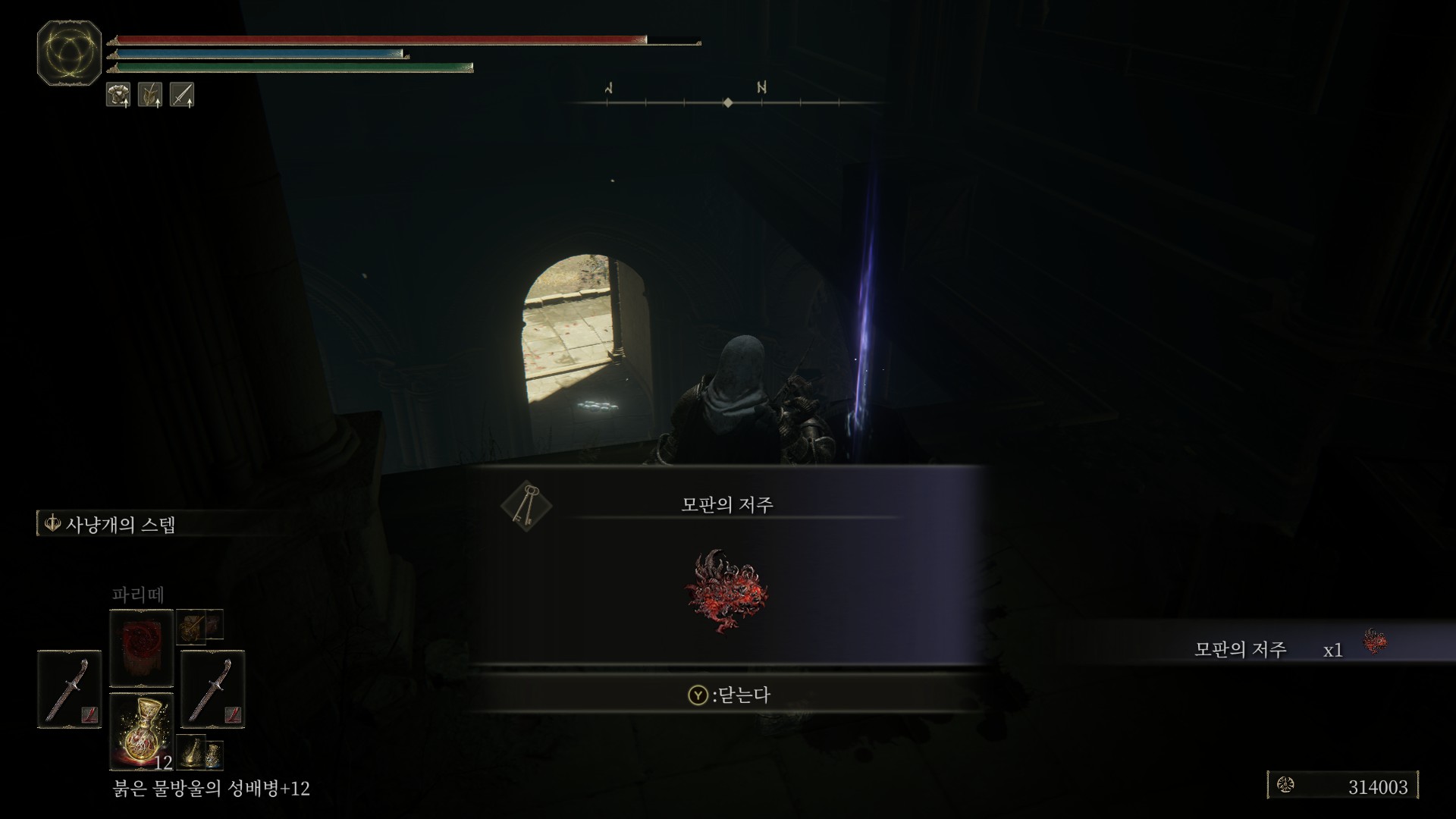 플레이어가 들어온 곳을 임의로 2층이라고 하면, 2층 방 구석에서 모판의 저주를 획득할 수 있습니다.