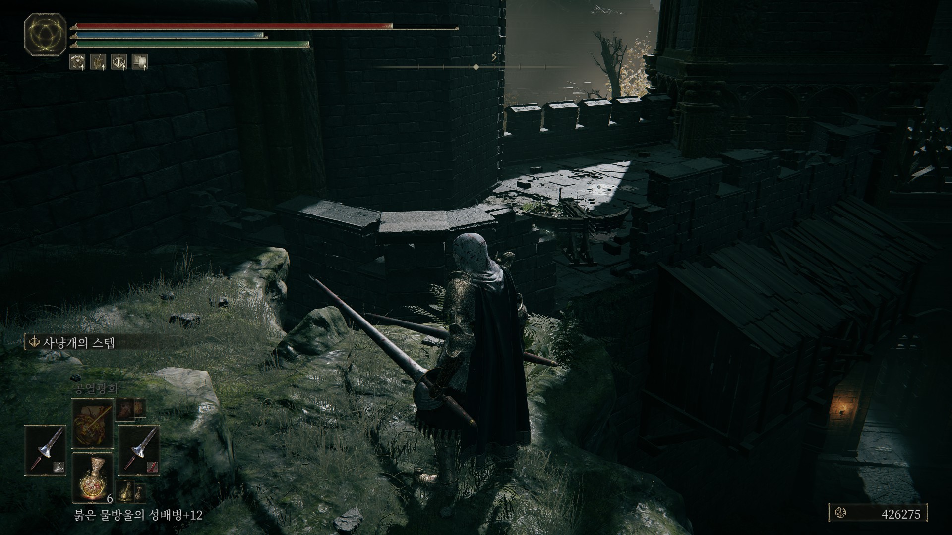스샷에선 잡몹들을 다 죽여놨지만, 대쉬 점프로 넘어가기 전이나 넘은 직후에 발리스타에 노출이 되니까 사냥개의 스텝이나 방패를 챙겨 가세요