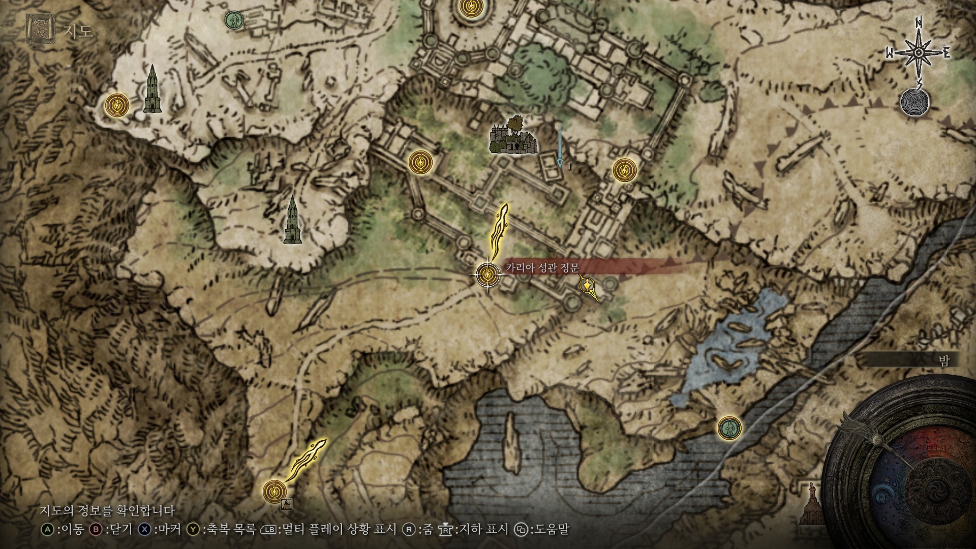 카리아 성관 정문 축복에서 시작, 마커가 찍혀 있는 구역으로 이동합니다.