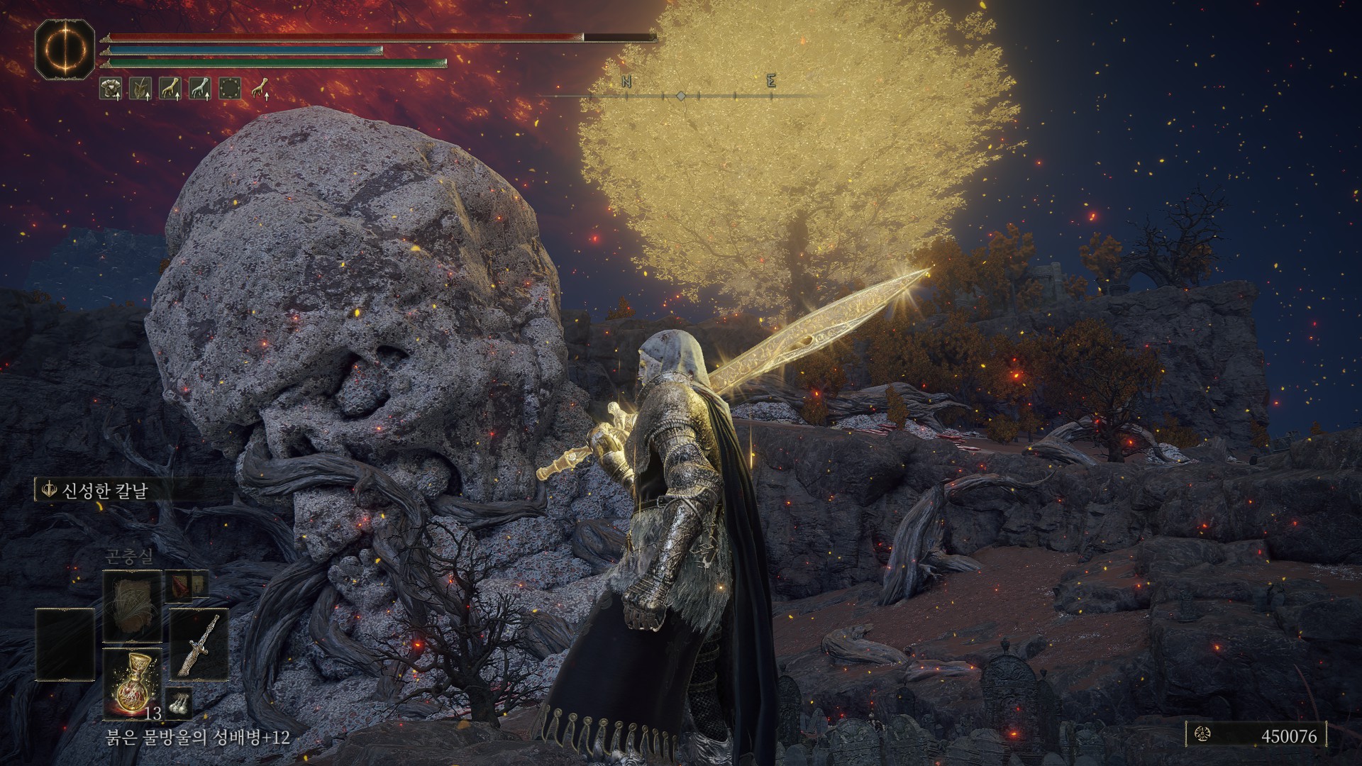 케일리드 거대 항아리(여담이지만 거대 항아리를 두들겨 패보면, 건물이나 구조물이 아니라 npc판정입니다. 두들겨 패보면 공격 판정이 제대로 들어가면서 탈리스만이 정상 작동함)가 지키고 있는 콜로세움에서 신수탑쪽 절벽을 보면 발견할 수 있는 대왕(?)거인.