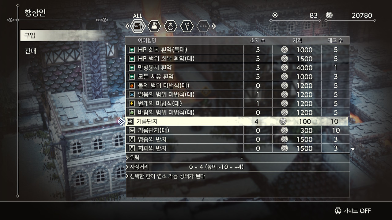 참고로 하드 난이도에서는 상인의 매료 스킬의 성공 확률이 엄청나게 낮기 때문에 개인적으론 비추천합니다.