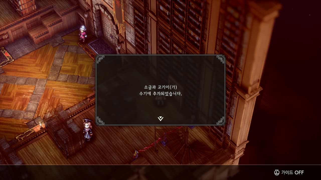 도서관 위층 바닥에서 포션 1개 획득