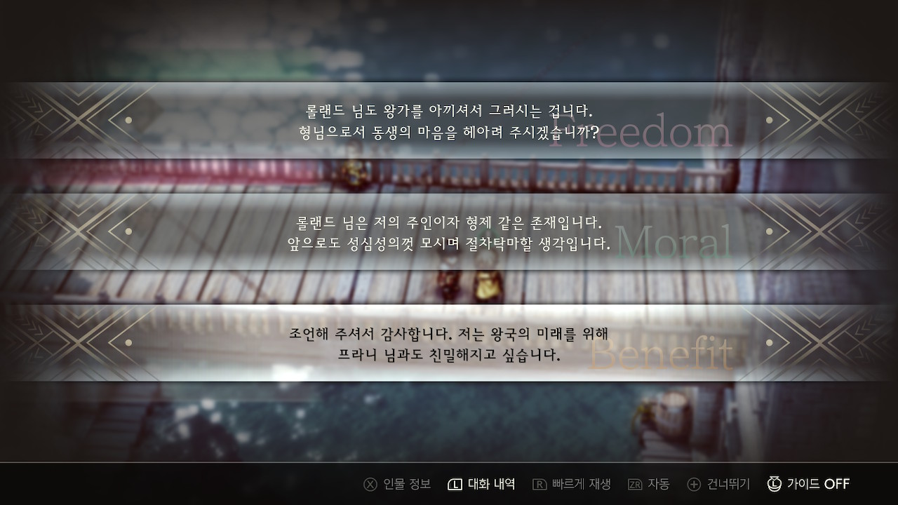 선택지는 위에서부터 아래로 모랄, 베네핏, 프리덤이 상승합니다.