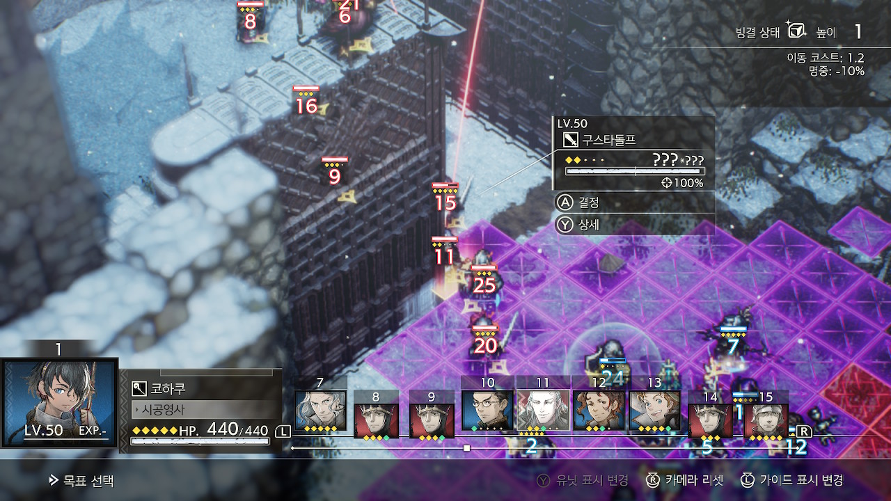하드 난이도의 경우 아군의 공격력이 많이 빗나가기때문에 딜러들은 50레벨을 맞춰놓는게 좋습니다. 특히 루돌프, 롤랜드, 휴에트처럼 명중률이 어중간하거나 명중률이 특히 중요한 캐릭은 명중 관련 장신구를 최소 1개 장비하는걸 권장합니다.