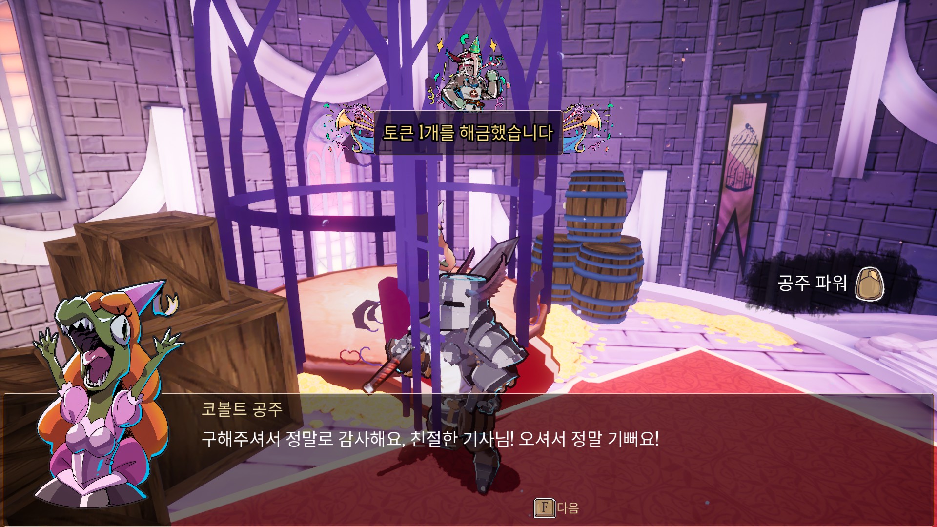 3D 플랫포머와 로그라이트 요소의 신선한 결합. 당신의 기사를 선택한 후, 공주를 초대한 다음 절차적으로 생성되는 던전과 함정으로 가득한 성으로 데려가세요!
