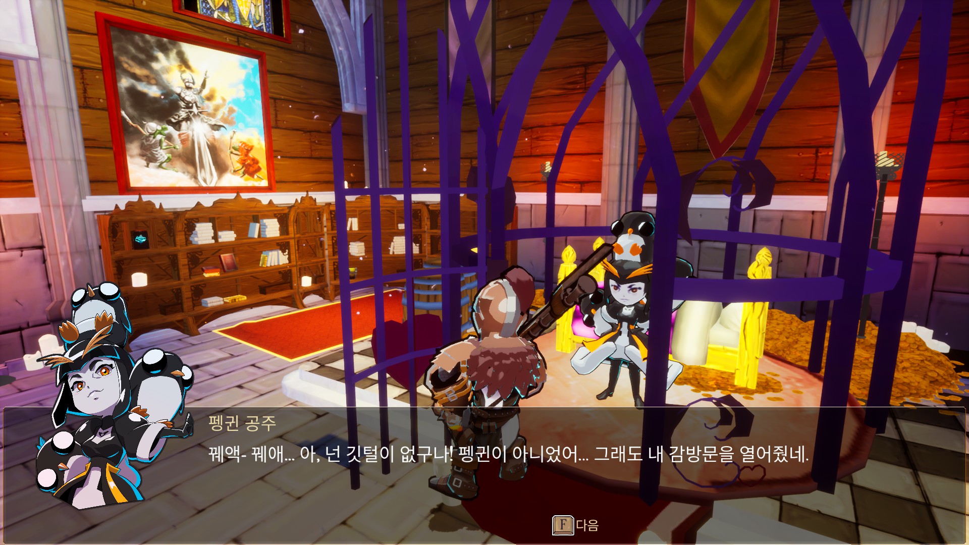 선더 공주님 다음에 만난 펭귄 공주. 코볼트, 선더에 비하면 선녀임. 공주들은 외모만 다른게 아니라, 각각의 특수한 스킬들을 갖고 있습니다.