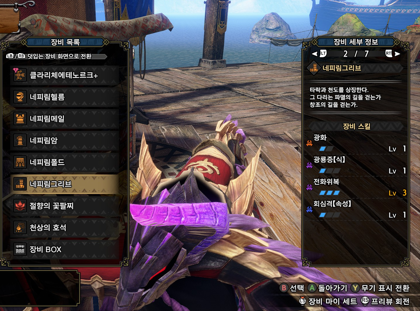 깡통 상태 네피림 방어구 스킬셋입니다.