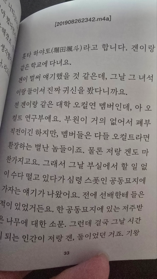 상투적인 문장도 아쉽고, 전개도 긴키 지방의 자가복제 수준이라 신선함이나 색다른 공포감을 원한다면 실망할 확률이 높다고 생각한다