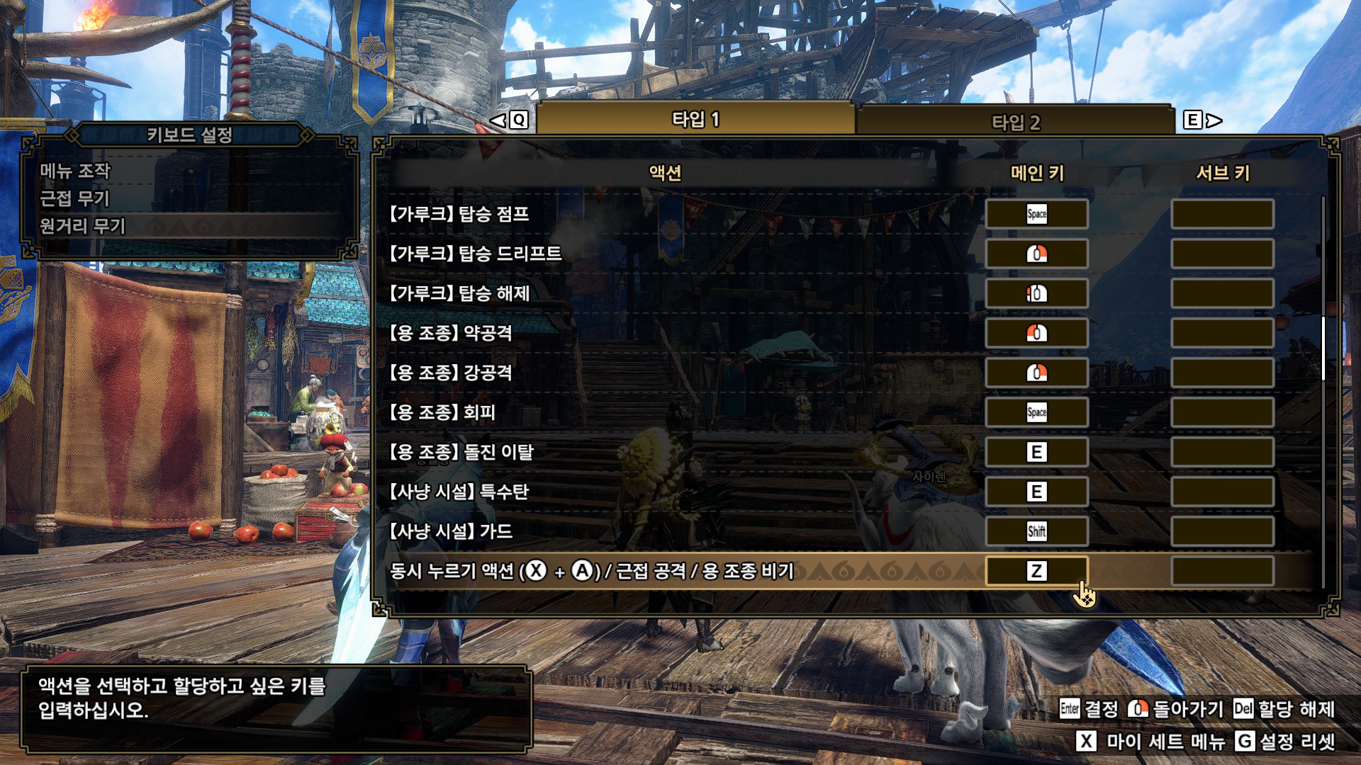 몬스터헌터 라이즈 키보드 마우스 설정(원거리)