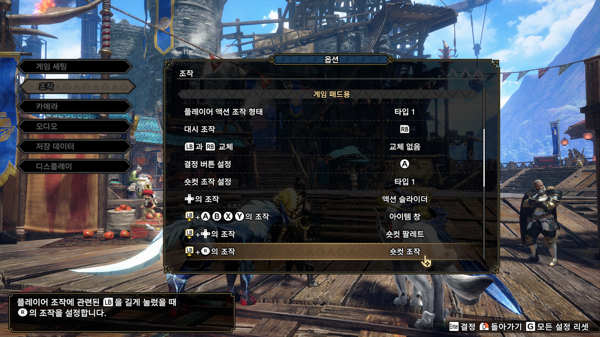 "동시 누르기 액션 RB+X+A / 신속교체"은 합기나 신속 교체를 해야 하는 커스텀(광화분투 등)을 위해서 따로 설정해두면 편합니다. 저는 새끼손가락으로 누르는게 편해서 컨트롤에 배정했습니다.