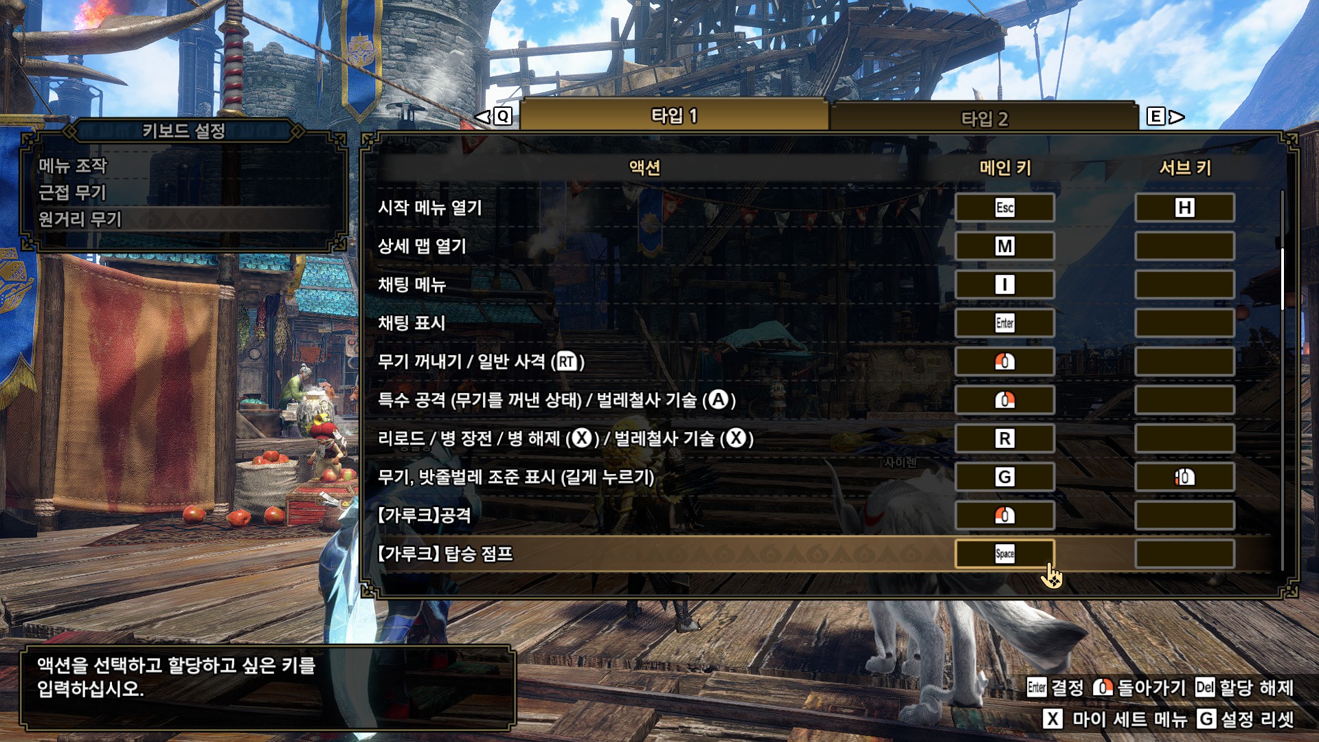 가루크 탑승 점프는 기본 설정이 조금 달랐던 것 같은데, 스페이스=점프로 통일하기 위해서 설정을 조금씩 바꿨습니다.