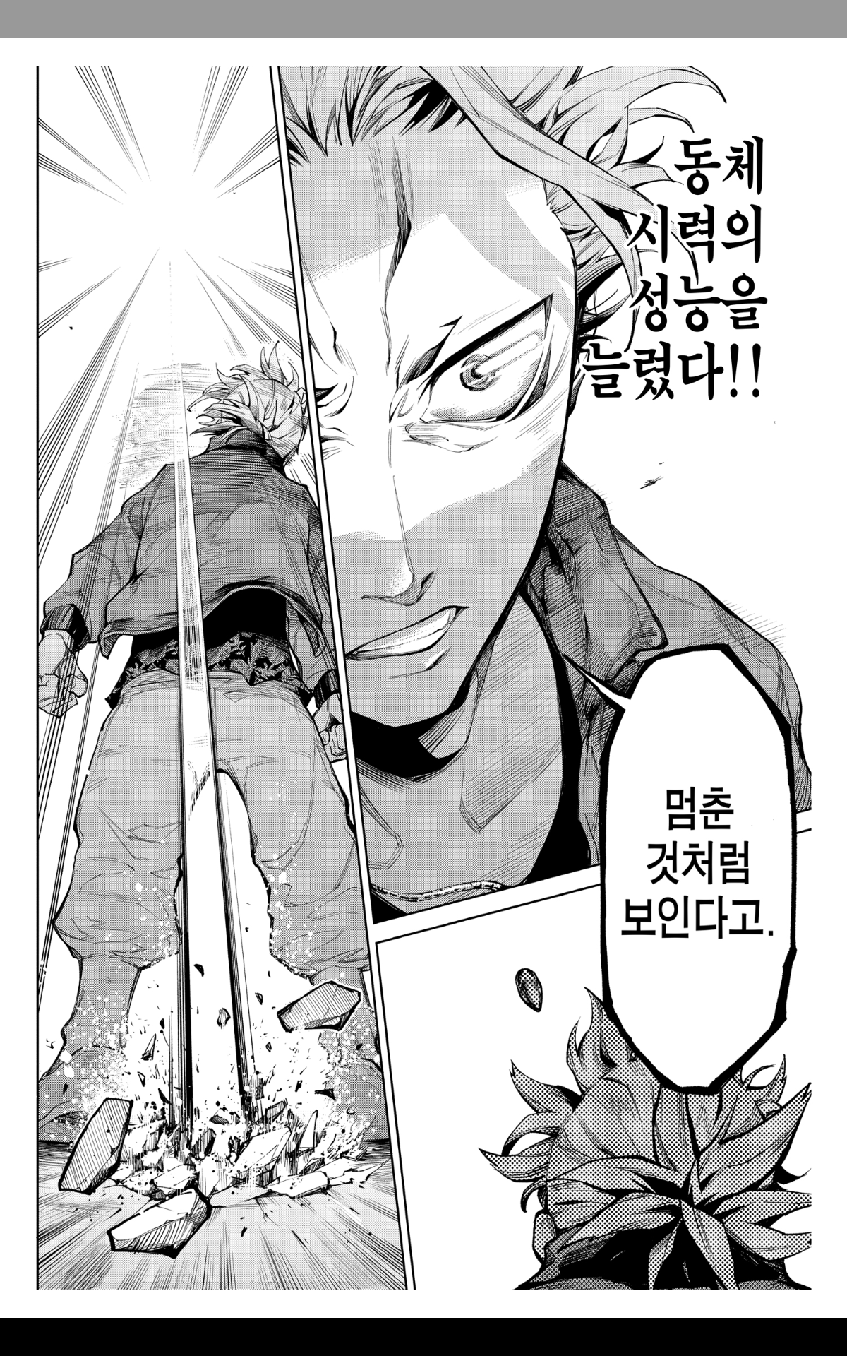 무작정 동체 시력을 늘려버리는게 허용되다보니, 시간 감각을 늘린다거나, 체공 시간을 늘린다거나, 폐활량을 늘린다거나, 중력을 늘린다거나, 관성을 늘린다거나, 체력을 늘린다거나, 심폐지구력을 늘린다거나, 근력을 늘린다거나 아무렇게나 문장이 성립되는 식으로 다 될 것 같은데, 실제 작품에서는 극히 제한적인 것들만 늘릴 수 있을 게 분명하다.