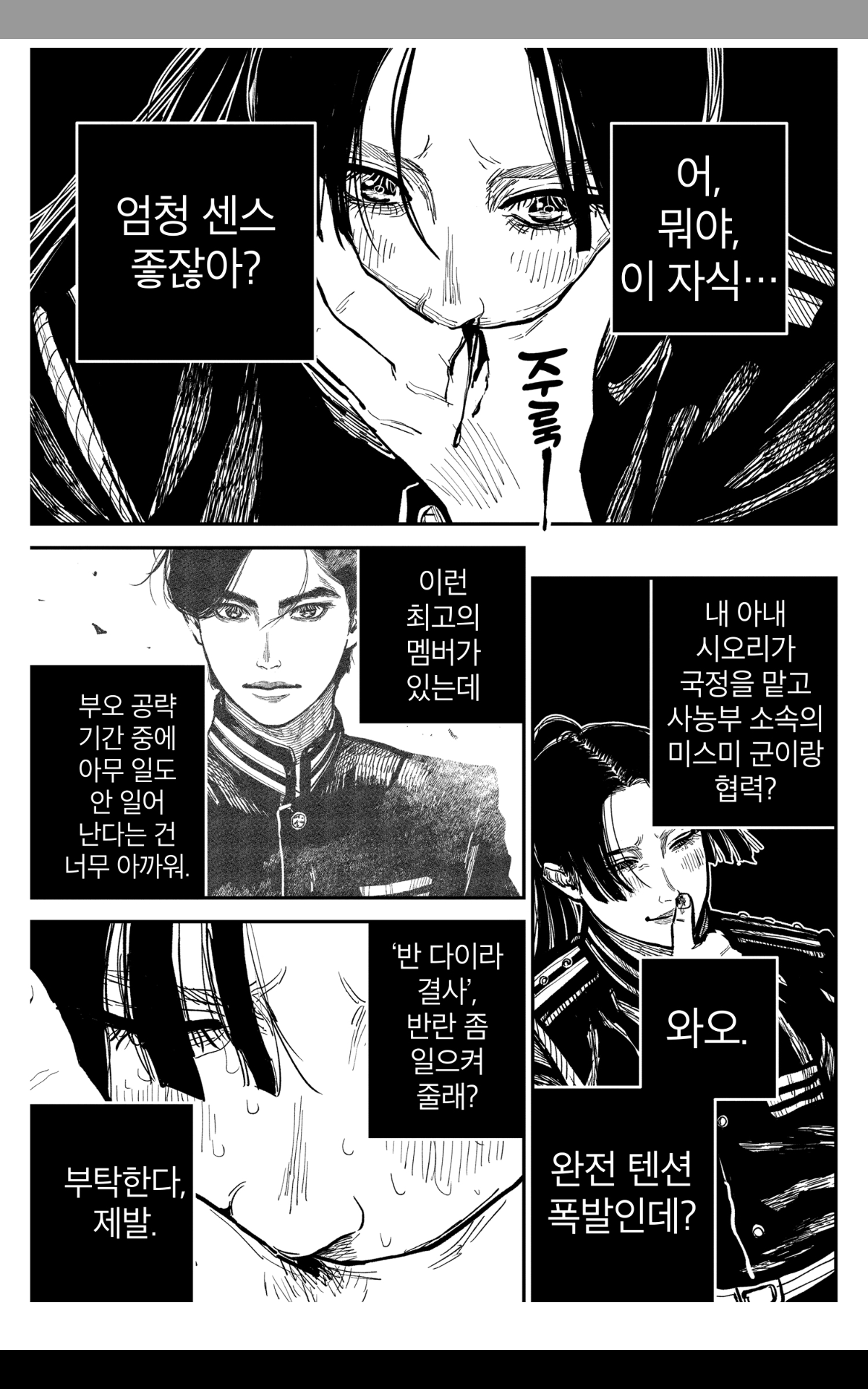 예를 들어, 항상 단행본 마지막에는 항상 주인공이 뭔가를 할 것처럼 각을 잡으면서 "천재 군사 xxx의 ~~~" 빌드업을 시전하는데, 이 패턴이 계속 반복되다보니 질리는 감이 있었는데, 5권부터는 새로운 세력, 새로운 인물들 위주로 이야기가 흘러가서 이전에 비해 몰입도가 높았다.