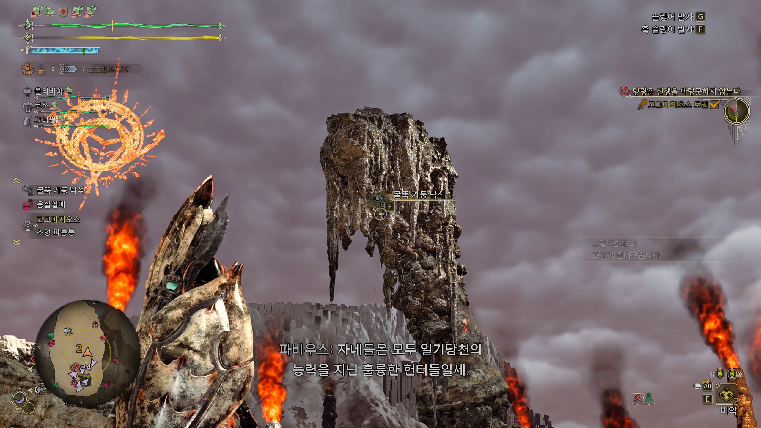 마지막 페이즈에는 맵 양끝에 낙석이 있는데, 이 두개를 맞추고 못맞추고가 꽤 차이납니다.