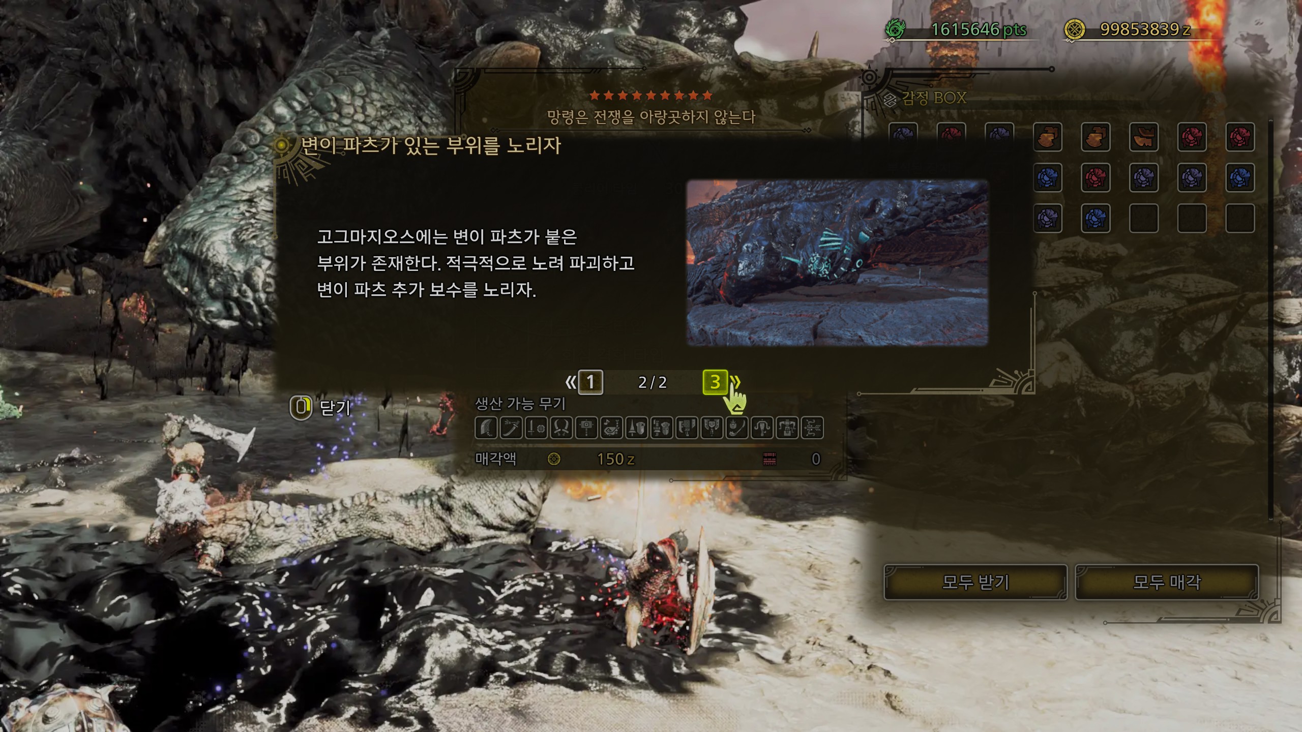 고그마지오스 토벌 보상으로 아티어 무기의 새로운 강화 해금과 고그마 방어구를 만들 수 있습니다.