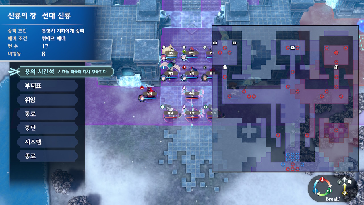 -적군 증원은 14턴에 용2마리 + 잡졸 2마리(기마병 혹은 마도병)가 섞여서 오는걸 시작으로, 매 3턴마다 새로운 증원이 도착. 이 뇌절은 35턴에 종료되며, 마지막 뇌절은 용3마리가 한꺼번에 등장하는 식입니다