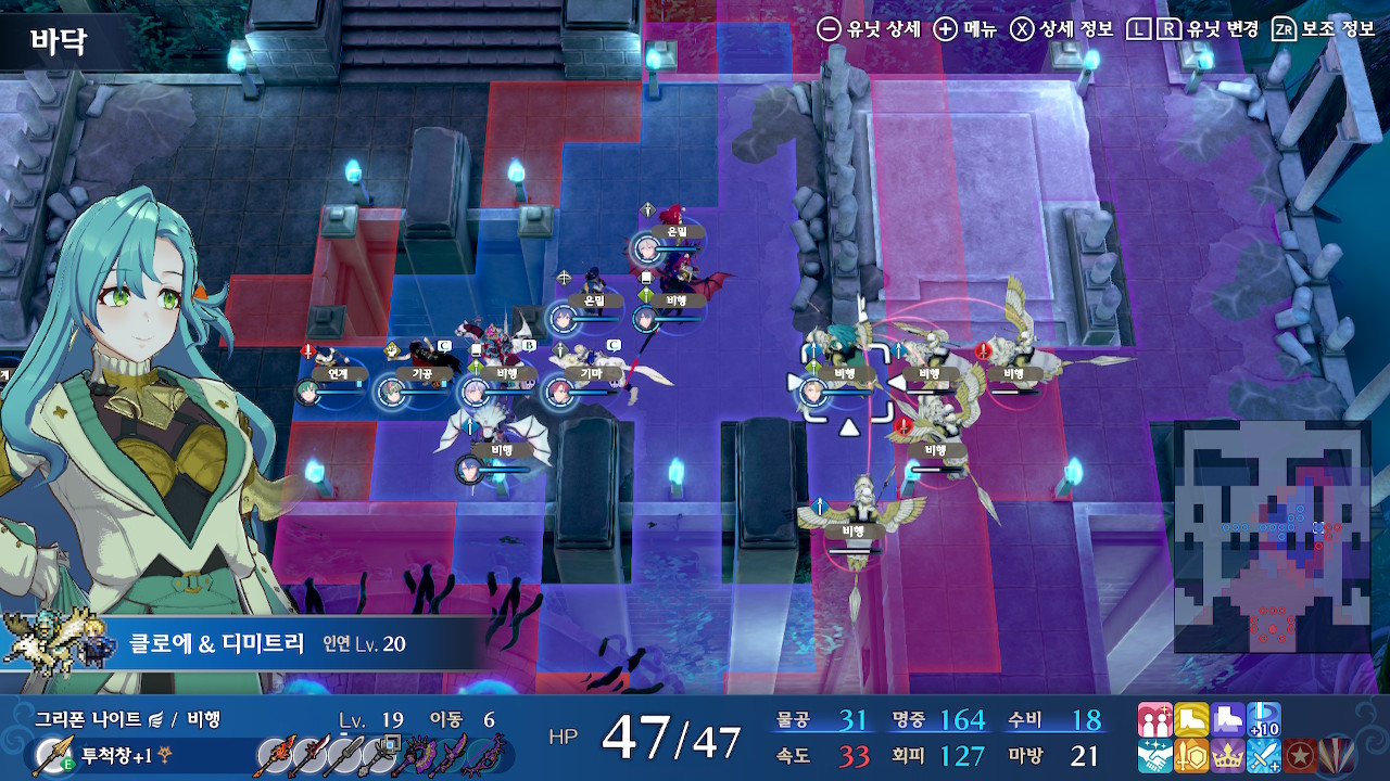 전턴에 클로에 위치가 몇칸 더 남쪽이었다면 엄청나게 위험했을텐데, 중갑병의 큰창에 맞고 위쪽으로 밀려나서 살았습니다(...). 거기에 더해 재수좋게 디미트리 로테까지 와서, 본대와 합류 후 성방태세 켜고 버티기 시전.