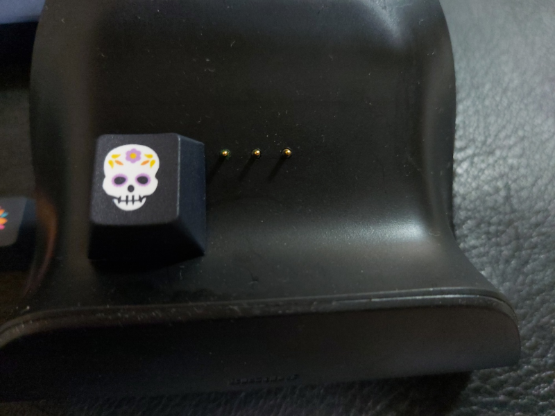 혹시나 구매하실 분이 있다면 참고하시라고 팔얼블 충전독 위에 키캡을 올려서 사진을 찍었습니다.