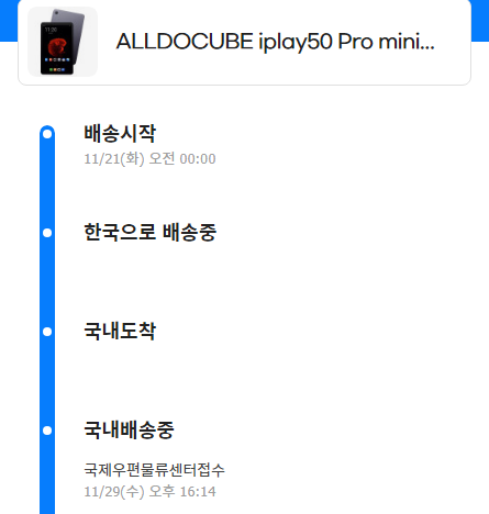 그리고 11월 21일부터 하루에도 몇번씩 유니패스에 들어가 운송장 번호를 검색했었습니다.