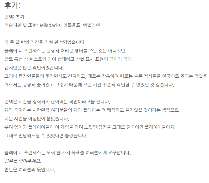 슬레이 더 프린세스 (Slay the Princess) 한글 패치