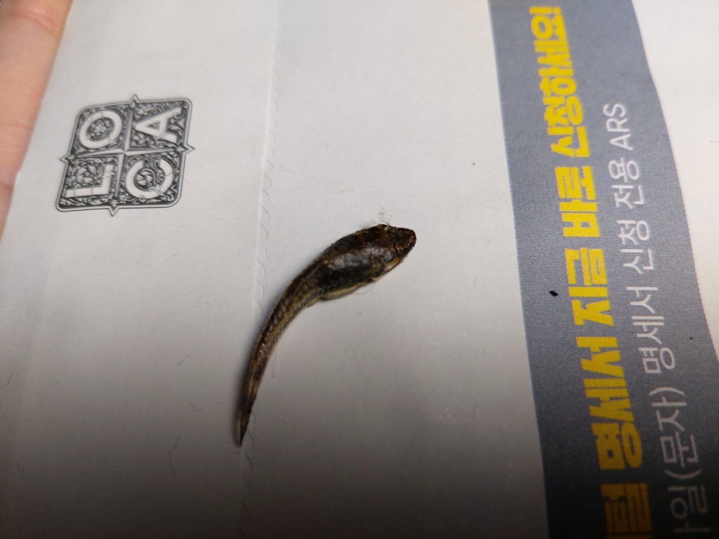 위의 사진은 오늘 아침에 오토싱 점호를 하던 도중에 1마리가 도저히 안보여서 어디 짱박혀 있겠거니...라고 생각했다가 어항에서 20cm정도 옆에서 발견한 건조 오토싱이다.