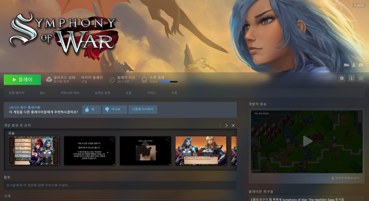 플레이 타임 : 약 29시간(영문판 진행, 한국어 공식 업뎃 진행을 빼면, 실플레이 시간은 27~8시간쯤) 난이도 : 초회차 노멀 하드로 하면 다르기야 하겠지만, 전술보다는 유닛 육성, 병과 조합이 더 중요한 게임인 것 같다. 전체 전투력보다는 비행 병과, 기병 재이동, 급습 경기병(이름이 정확하게는 기억 안나는데, 검은색 말을 탄 궁기병, 영문명 raider)을 최대한 빨리 갖추는게 더 중요하다고 봄. 조만간에 dlc 출시+밸런스 패치로 궁기병(9 raider 조합으로 벨 부수고 튀는게 제일 재밌음)과 비행 병과가 나락으로 갈 수도 있겠지만, 현재 버전에서는 위 두병과가 가장 좋다고 느꼈음 챕터 난이도가 들쑥날쑥하다 유닛 능력치, 병과 보급 등 몇몇 수치를 확인해야 할 때 ui가 불편하다 아무래도 초회..